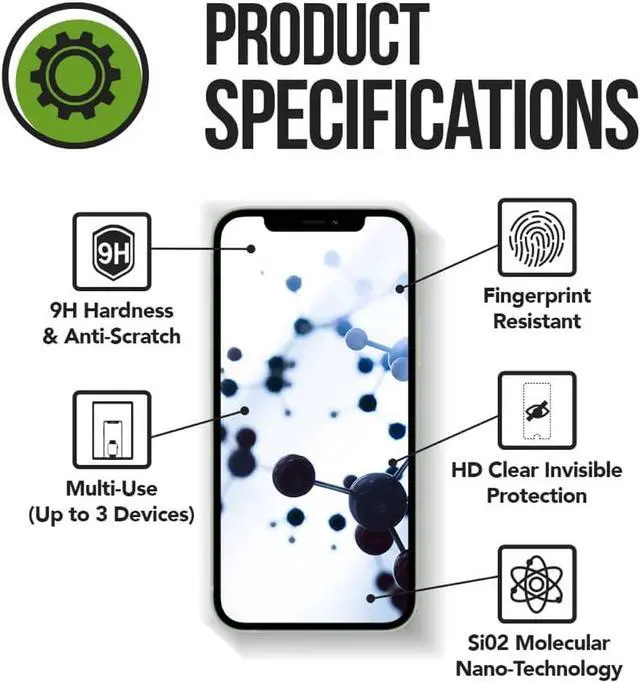 " LIQUID SCREEN PROTECTION: Experience a flawless defense for your devices with our specially-designed liquid screen protector. Our proprietary SiO2 formula forms an invisible barrier that's fingerprint-resistant, shielding your precious screens from scratch (rated 9H), and even waterproof.