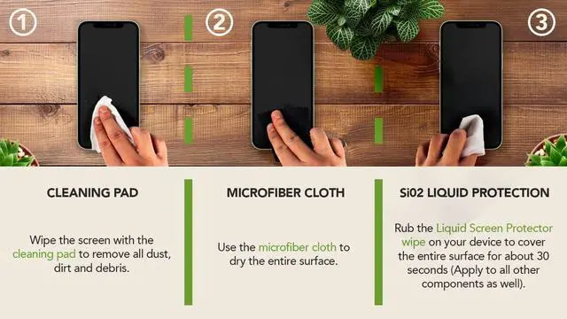 " LIQUID SCREEN PROTECTION: Experience a flawless defense for your devices with our specially-designed liquid screen protector. Our proprietary SiO2 formula forms an invisible barrier that's fingerprint-resistant, shielding your precious screens from scratch (rated 9H), and even waterproof.