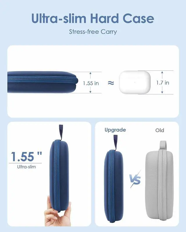 Ultra-Slim Yet Protective- Slim profile for easy packing and travel, without compromising on protection. The durable EVA hard shell guards against bumps, drops, and pressureperfect for daily use or travel.