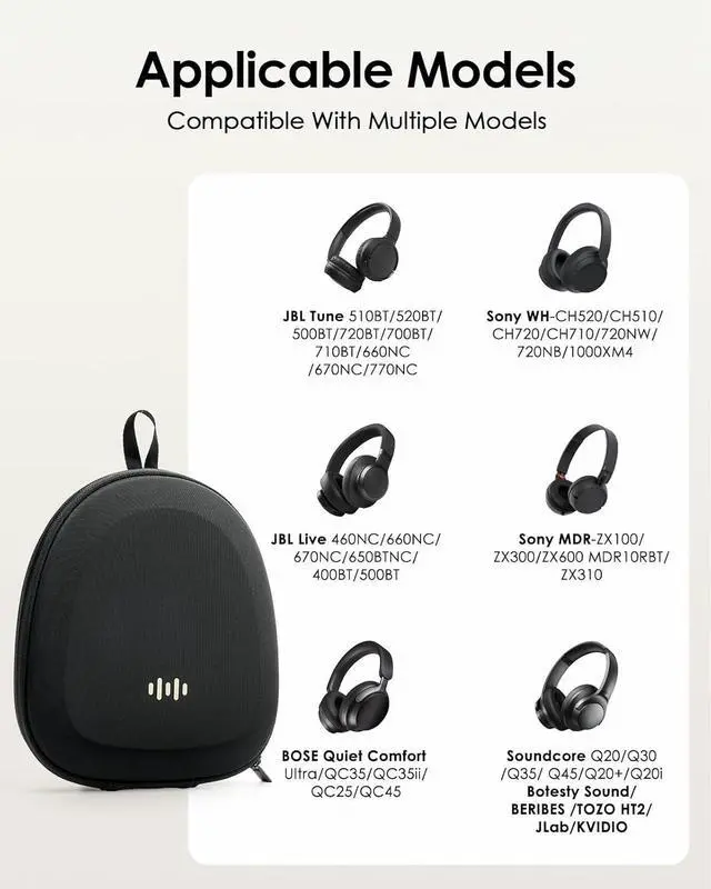 Universal Compatibility- Compatible with most over ear headphones including JBL Tune/JBL Live/ Sony WH-CH/Sony MDR-ZX/Bose /Soundcore Anker/BERIBES/TOZO/JLab etc no matter your brand, this case has you covered.