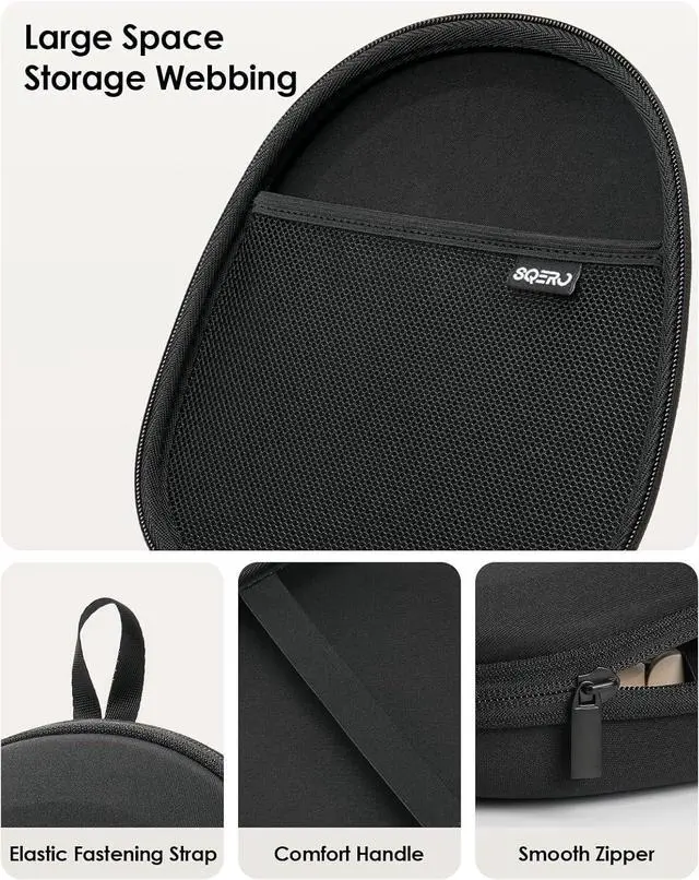 Smart Dual-Zone Storage Design- Top lid features a full mesh pocket for neatly organizing charging cables, adapters, and small accessories. Bottom compartment includes a secure elastic strap to hold your headphone in placeno more shifting or rattling.