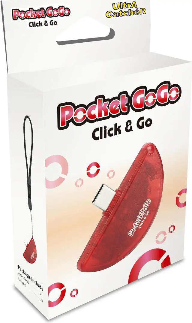 Totalconsole Pocket GoGo Click & GO is the Simplest and Lightest Pokémon Catching Device! When inserted into your phone, Pocket GoGo can automatically throw Poké Balls to catch Pokémon and spin PokéStops without the need for buttons. It is plug-and-play (pair once). Plug it into your phone and start catching Pokémon on the go! Connects to your phone USB-C or USB-C (5V/1A only) power source for immediate play.