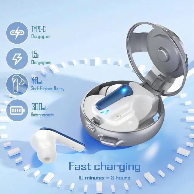 2024 Bluetooth 5.3 Technology The wireless earbuds use the bluetooth 5.3 chipset. There is a faster and more stable signal transmission and has successfully achieved low latency without interruption. With a range of up to 15 m, whether you are at home, in the office, or on the road, you don't have to worry about disconnection of the bluetooth earbuds. Automatic pairing & compatible with multiple devices.