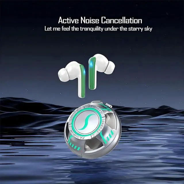 Trendy and decompressive toys: The charging case is designed with two gyroscopes, which can rotate smoothly at high speed, and is made of metal materials and luminous materials, which are anti-drop and wear-resistant, and are equipped with metal chains and carabiners as standard, which can be hung around the neck, backpacks, clothes, etc., trendy and beautiful, this product is not only a headset, but also a very decompressive toy