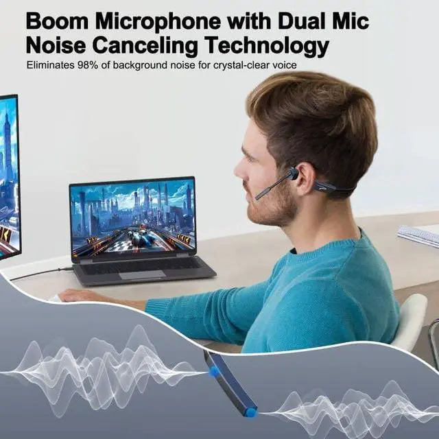 Bluetooth Bone Conduction Headphone with Microphone Boom Advanced AI Dual Mic Noise-Cancellation True Bone Conduction Technology Enjoy up to 10 hours of continuous playtime Seamless Connectivity USB Bluetooth Adapter Included Compatible with Leading Softphone Platforms Multi-Purpose Wireless Bone Conduction Headset