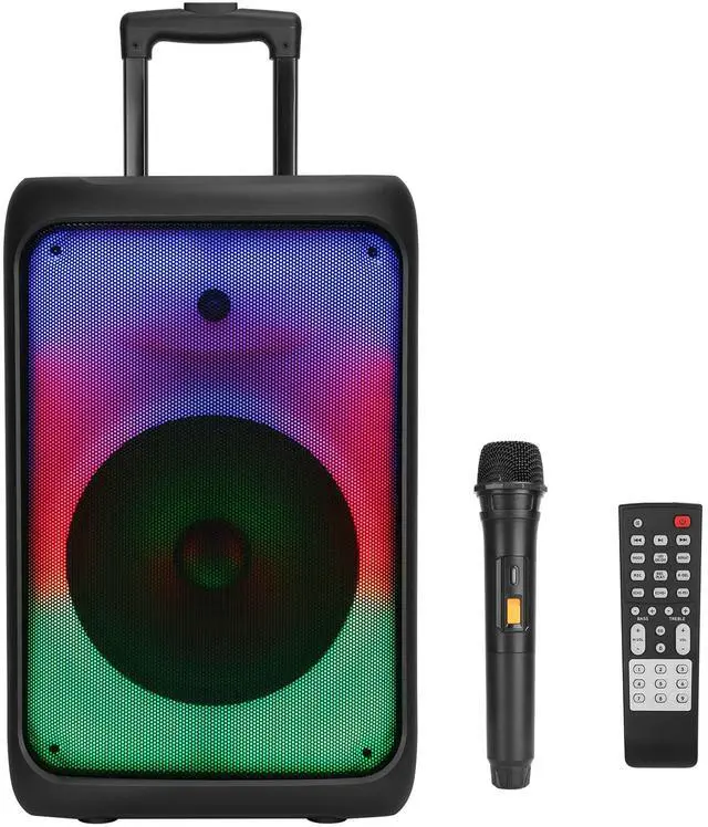 Convenient Trolley/Handle & Wheels: Comes with microphone recording, rechargeable battery, built-in handle, telescopic trolley handle, and wheels for easy transport. Ideal for parties, outdoor events, and on-the-go music.
