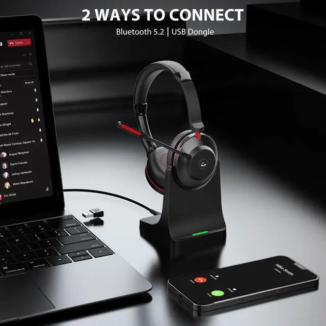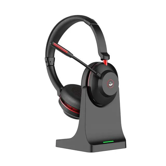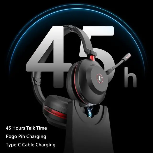 Long conference calls. Back-to-back customer service shifts. Marathon work-from-home days. The BT882C Black-Red Dual Ear Wireless Headset is built for endurance. With 45 hours of talk time, dual Bluetooth 5.2 + USB Dongle connectivity, and dual Pogo Pin + Type-C charging, this headset keeps you powered and connected longer than any other.
