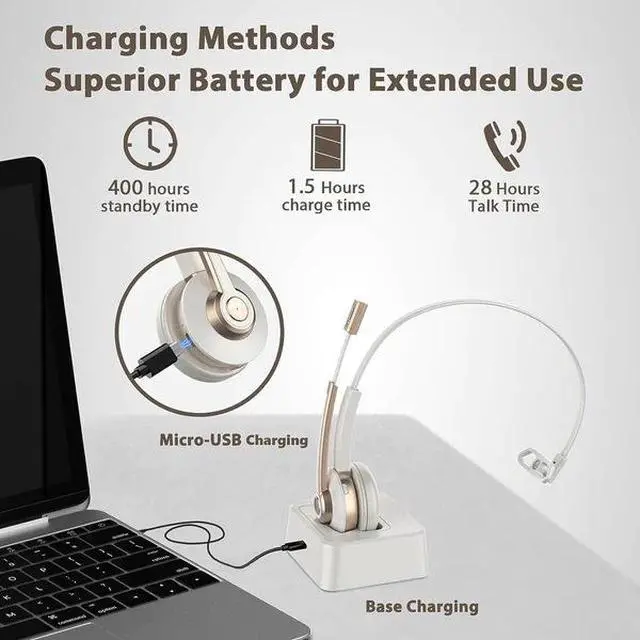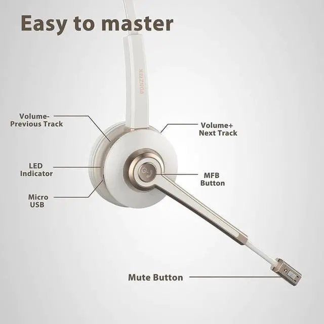 Long-haul truck drivers. Cross-border customer service agents. Call center representatives. Office professionals. The BT-681C-GD Platinum Single Ear Wireless Headset delivers professional-grade noise cancellation with a distinctive platinum white finish. With a noise canceling microphone, 30mm driver, Bluetooth connectivity with 1m wired backup, and lightweight single ear design, this headset keeps you comfortable and connected through the longest shifts.