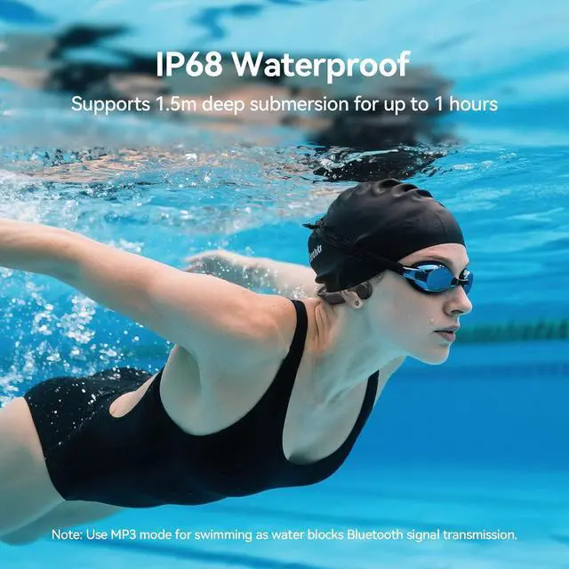Because bluetooth signals cannot be transmitted under water, MP3 mode allows you to enjoy music while swimming.