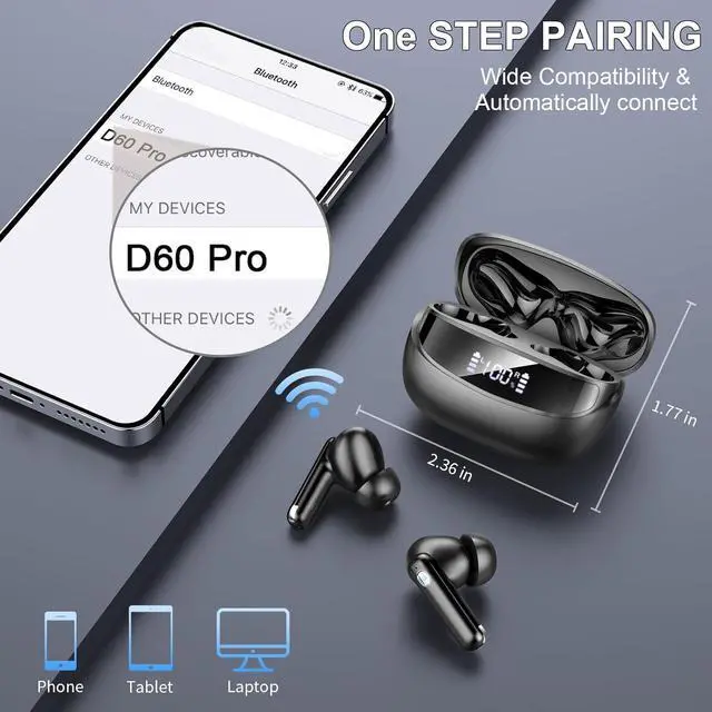 Advanced Bluetooth 5.4 and Fast Auto Pairing: Wireless earbuds adopts the advanced Bluetooth 5.4 technology and support HID, HFP, A2DP, AVRCP. Bluetooth 5.4 enables stable connectivity over longer distances by enhancing signal stability and interference immunity, and the delay is reduced to 35ms. Simply take the bluetooth headphones out of the charging case, the bluetooth earbuds can be automatically connected to the previous paired device