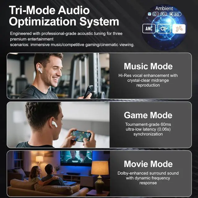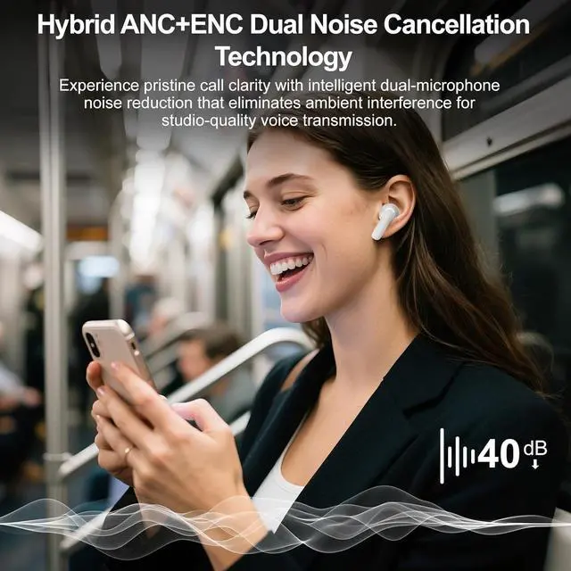 Reduce Noise By Up to 98% noise cancelling earbuds wireless upgraded noise cancelling system to block out a wider range of distracting noises. Automatically Tailored Noise Cancelling can detects external noises and automatically selects a suitable level of noise cancelling for your surroundings. Enjoy your personal space whether you're indoors, outdoors, commuting, or on a flight.These wireless Bluetooth earbuds deliver crystal-clear calls even in windy environments. The dual sound wave directional transmission effectively eliminates sound leakage, making our ear buds perfect for clear communication.So wherever you go, you'll always have the space you need to focus.