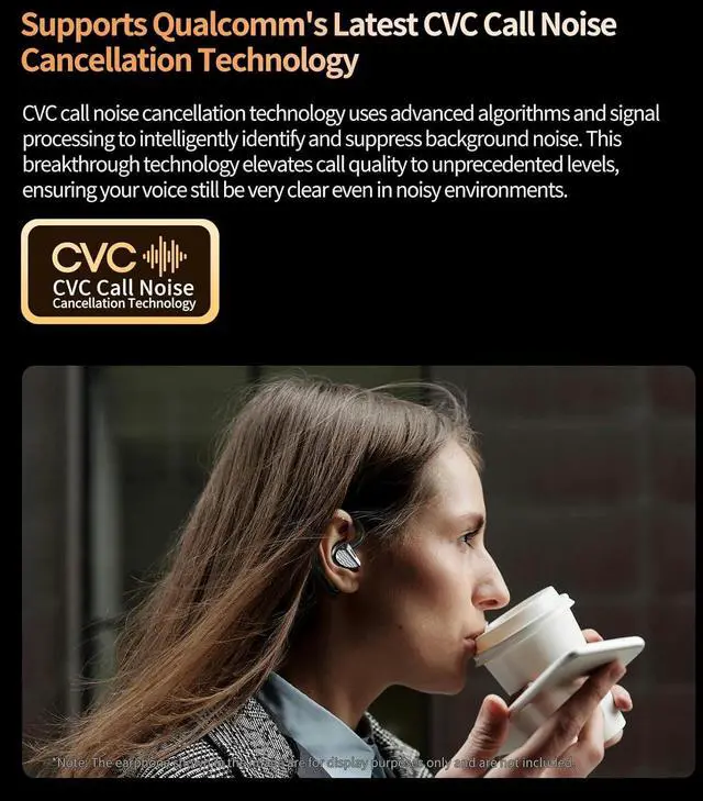 Qualcomm's CVC Technology: cVc (clear voice capture) noise echo cancelling and noise suppression technology is designed to transmit crystal clear voice quality when making calls. Whether youre at home or out and about when making a voice call using a Bluetooth earbuds, ensuring your voice still be very clear even in noisy environments