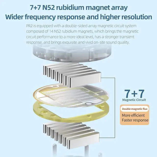 7+7 N52 rubidium magnet array KZ PR2 in ear wired headphones equipped with 7+7 N52 rubidium magnet array, which brings the magnetic circuit performance to an ideal level,has a stronger transient response, and brings exquisite and vivid on-site sound quality.