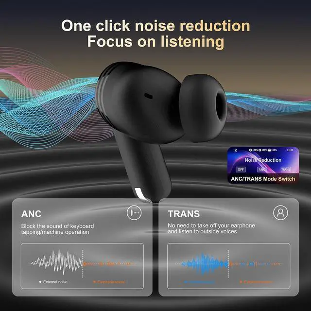 Earbuds with transparency mode & Safety Guarantee This smart earbuds with screen allows sound to reach the inner ear through the transparency mode,effectively protecting the child's and yours eardrum,noise canceling earbuds wireless help you have a safer life,stay motivated with your favorite audio while also being aware of your surroundings.