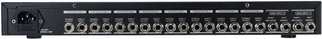Stereo Mono Switching: between stereo and mono outputs with a simple key when the main input is a mono signal. Each channel is equipped with a main input 1/2 selection key, allowing control over levels on the rear panel's master inputs.