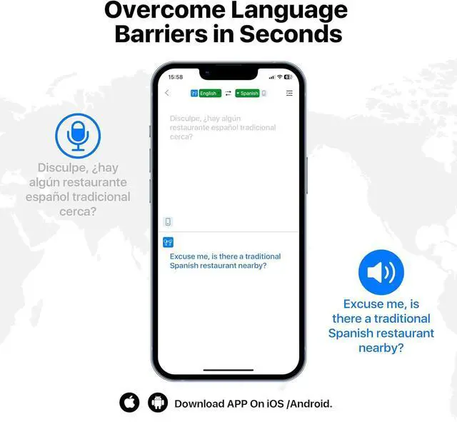 Multi-language Translation: High-precision 144-language translator earbuds, real-time two-way translation and certain off-line package requires in-app purchase including Chinese, English, Japanese, Korean, Russian, German, French and Spanish