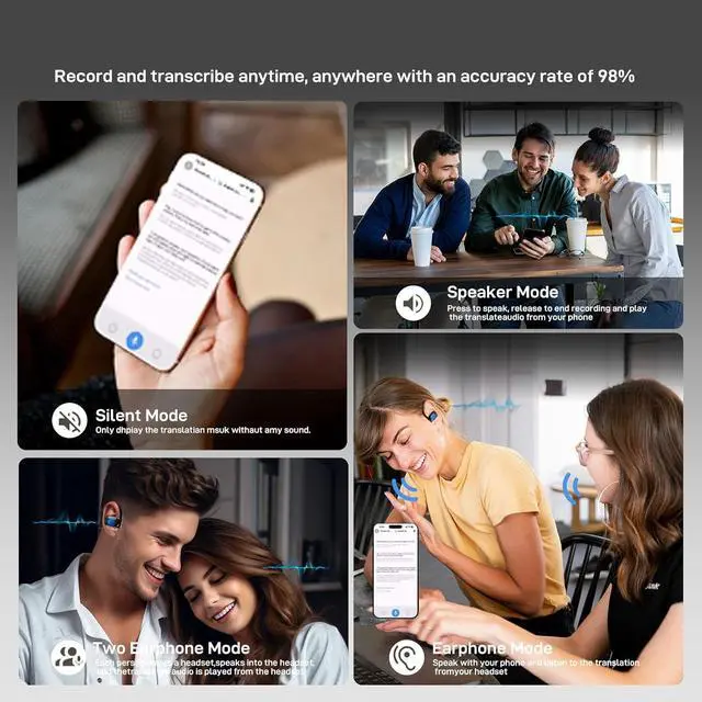 1Dowload APP2Offline Translation3Real Time Translation1Earbud design2Long Battery Life33-in-1 Translator Earbuds1Crystal-Clear Sound2International Travel3Academic Exchange4Emergency Situation5Learning & Training