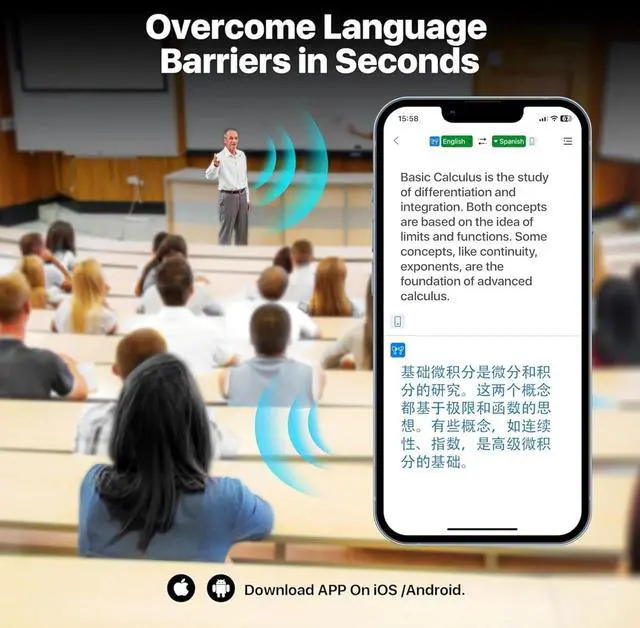 Easy Connection: The language translation device requires the translation headset to be connected to the mobile phone Bluetooth. When connecting Bluetooth, the headset needs to be removed from the charging box. And download the application "One Click" (compatible with iOS and Android) through the user manual.