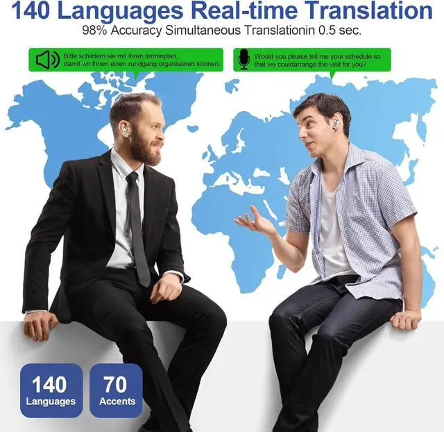 140 Languages This M7 AI translation earbuds real time support online translation in 140 languages, with a translation accuracy of up to 98%, They support online translation for popular languages like Spanish, Portuguese, Chinese, English, and French. Whether you are studying, working or traveling, let your language flow smoothly.