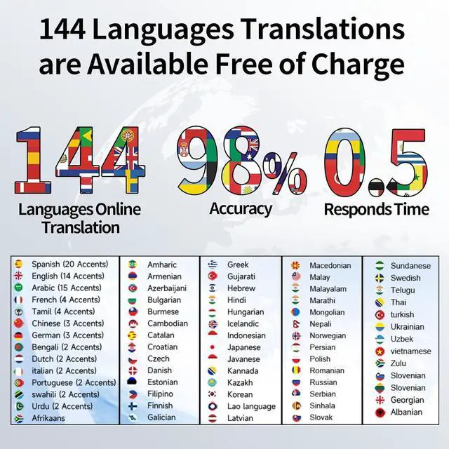 AI-Powered Precision Translation Experience seamless real-time conversations with industry-leading accuracy (over 98%) across 144+ languages. Advanced AI ensures natural, context-aware translations for travel, business, or daily use.