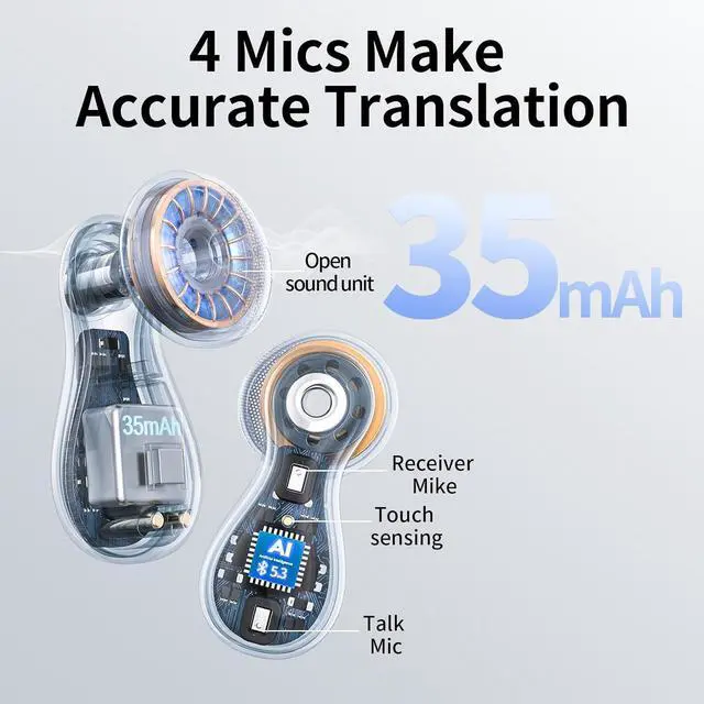 Four built-in microphones and advanced noise cancellation capture your voice clearly, even in bustling environments. Perfect for calls, translations, or voice commands.