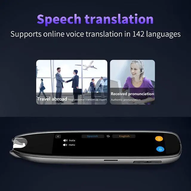 142 Languages Translator: Effortlessly translate in 142 languages with this smart scanning translator, including 60 online scanning translations. Experience fast scans with a 0.3S recognition speed and 98 percent accuracy, along with a large screen for seamless communicating.