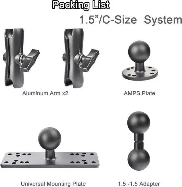 Universal Compatibility The pre-drilled rectangular mounting plate supports multiple hole patterns, making it compatible with a variety of fish finders, marine GPS units, CB radios, ham radios, and universal mounts. The AMPS hole pattern allows direct installation on boats, kayaks, or any flat surface. It is widely compatible with RAM Mounts, Arkon, iBolt, and other 1.5-inch / C-size / 38mm adapter and mounting systems.