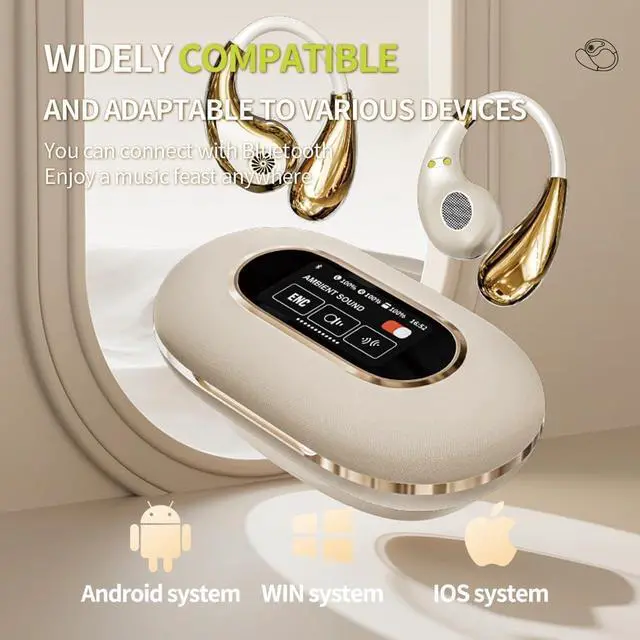Bluetooth 5.4 & HD Microphone Open Ear Headphones Wireless Bluetooth Enjoy lag-free audio streaming and ultra-fast pairing with Bluetooth 5.4 technologyperfect for video calls, podcasts, and music on the move.The built-in HD microphone with noise reduction ensures your voice is always heard clearly during calls or virtual meetings