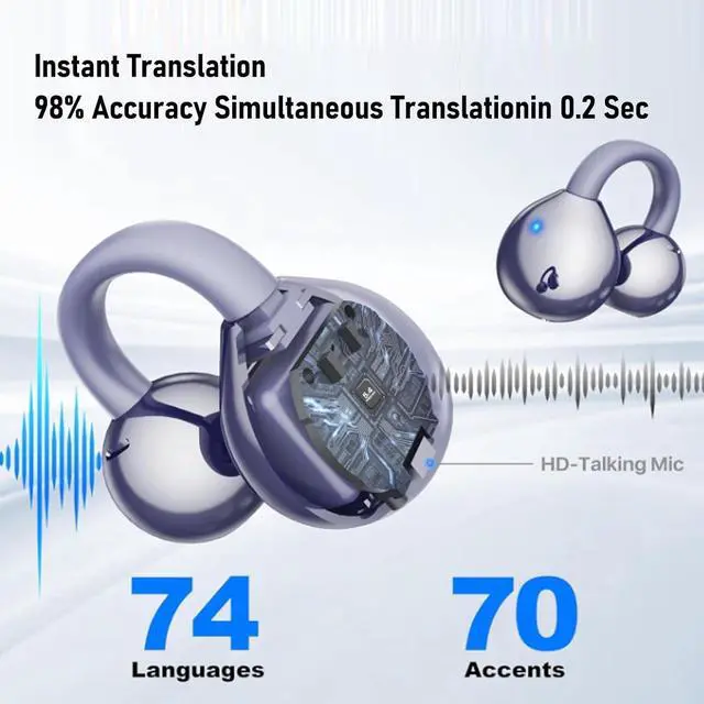 Multi Language Translation: Online translation earbud supports 144 languages translation; and is equipped with Bluetooth 5.49 connection, ligent noise reduction, large capacity battery, to realize ultra long battery life.