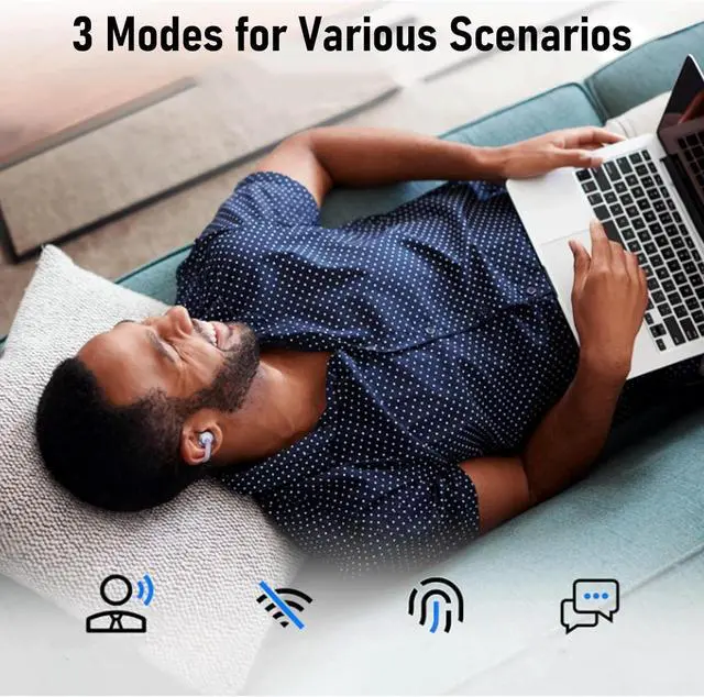 3 Powerful Translation Functions: Touch control mode (two people each wearing a earbud, single click or double click real time translation, suitable for acquaintances); speaker mode (one person wears the earbud, one person holds the phone, suitable for strangers); talk mode (two people each wearing a earbud, real time translation). Translation only takes 0.2S.