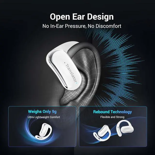 Innovative Open-Ear Design for Comfort and Hygiene: Experience ultimate comfort and security with the Wooask F56s open-ear design. The earbuds fit securely and minimize the risk of falling out while eliminating hygiene concerns typically associated with shared earbuds. Enjoy a safer, cleaner, and more comfortable translation experience every time