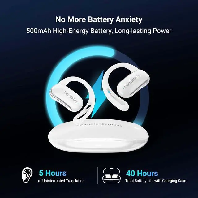 Extended Battery Life to Keep You Going: Stay powered up all day with the Wooask F56 translation earbuds. Offering up to 40 hours of use from the charging case and 5 hours of continuous translation, these earbuds provide uninterrupted language support. Whether you're traveling, exploring new places, or chatting with friends, youll never have to worry about running out of battery