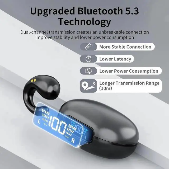 Open Ear Clip Ergonomic Earbuds: The subversive design of ergonomics adopts a completely open design, allowing you to listen to the sound of the external environment at the same time, and to respond politely to others.
