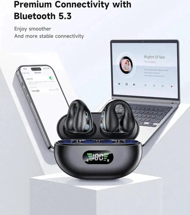 The bone conduction headphones free your ears with their open design, allowing you to enjoy your favorite music while staying attentive to the sounds of the world around you. Its advanced ergonomics offer a pain-free listening experience, ideal for extended use. Experience freedom with these Bluetooth sports headphones, designed to keep you going without sacrificing comfort.