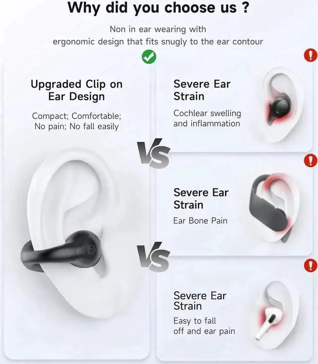 2 x Clip On Ear Wireless Earbuds