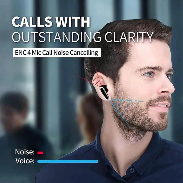 Bluetooth earphones with 4 ENC (Environmental Noise Cancellation) microphones can reduce call noise according to the call scene, so that the call sound can be clear and rich in conveying details.