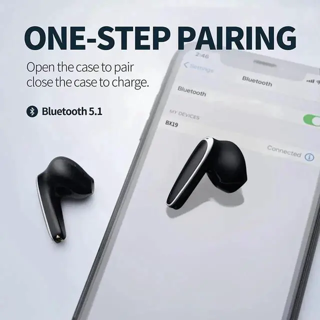 BX19 Wireless earbuds adopts advanced Bluetooth synchronization transmission technology to synchronize audio and video without delay, so that the connection is more stable and the signal transmission is stronger.