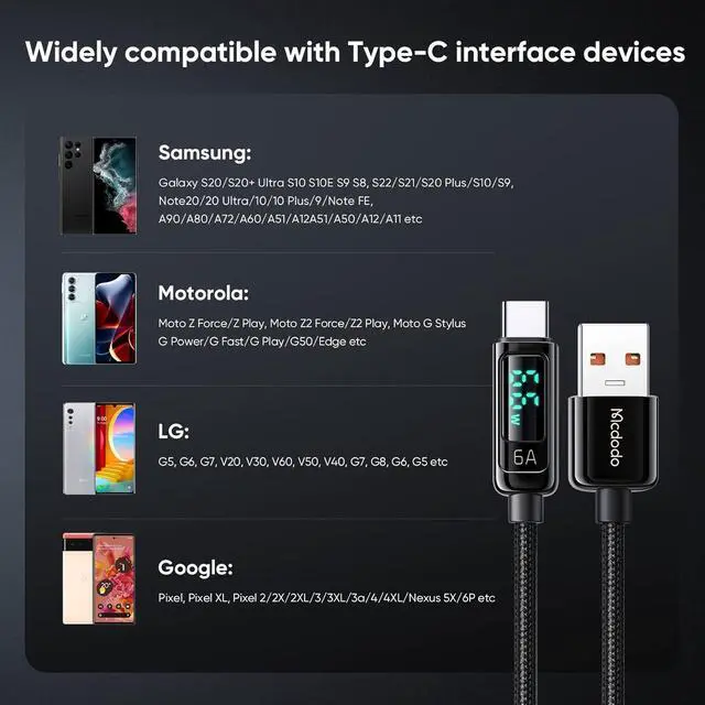 One cable for all USB C devices Featured with 6A standardized USB-C port, it can fast charge virtually all your USB-C devices including phones, tablets, Switch, your power bank and more.