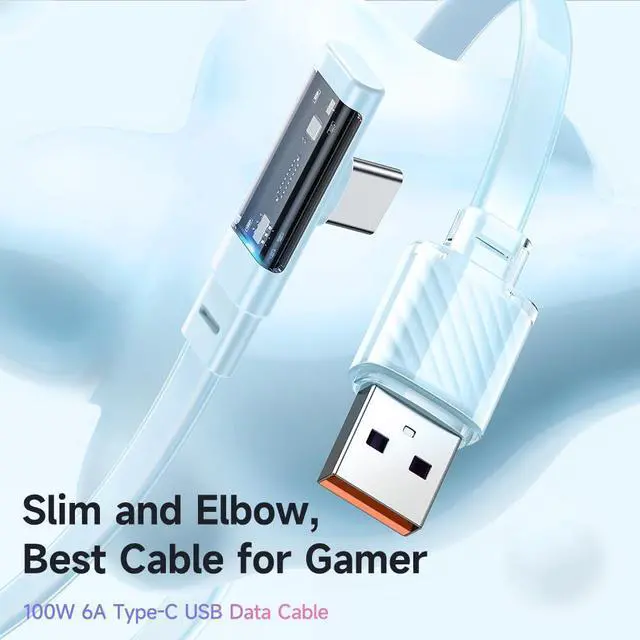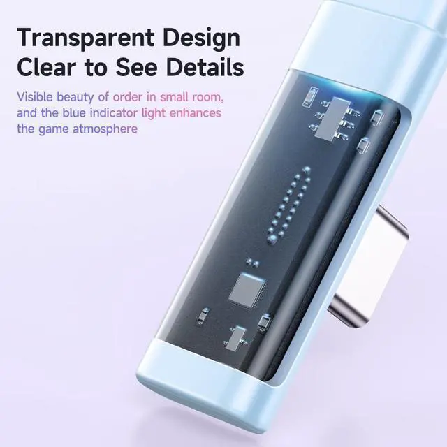 90° elbow and transparent design: I believe it is narrower, and it will fit better in your hand while charging and playing. 90° wire-avoiding design, 5mm ultra-narrow plug, and the narrow edge of the elbow are more comfortable to hold. (Conventional straight heads are easy to break and hurt your hands. It is a very unideal choice). Moreover, the transparent design in the port department allows you to see the details at a glance, and the indicator lights add to the gaming atmosphere.