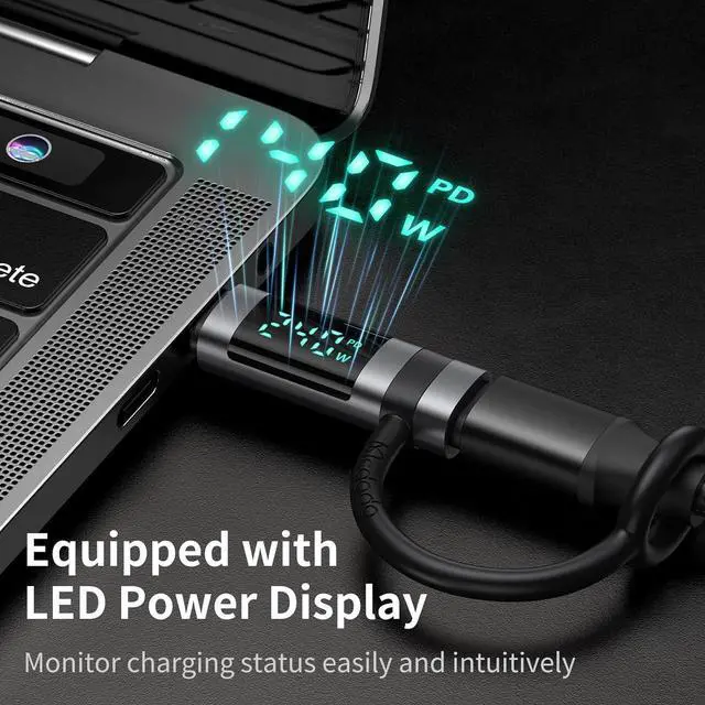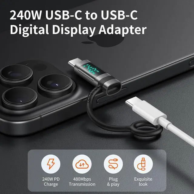 LED Digital DisplayJust plug it in and view the output power, the LED screen will show charging power and real-time display. Supports 240W high output power and PD fast charging. An ordinary usb c cable instantly becomes a digital display cable