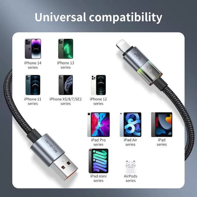 Wide CompatibilityMcdodo usb to lightning Cable is certified and compatible with 14 Pro/14 Pro Max/14/14 Plus/13 Pro/13 Pro Max/13 mini/13/12 Pro/12 Pro Max/12 mini/12/11 Pro/11 Pro Max/11/SE/XS/XS Max/XR/X/8 Plus/8/7 Plus/7/6s Plus/6s/6 Plus/6, iPad 9/8/6/5/iPad Pro 2nd/iPad Pro 1st/iPad Air/iPad mini/AirPods1 2 3/AirPods Pro1 2/iPod Touch, and other later models