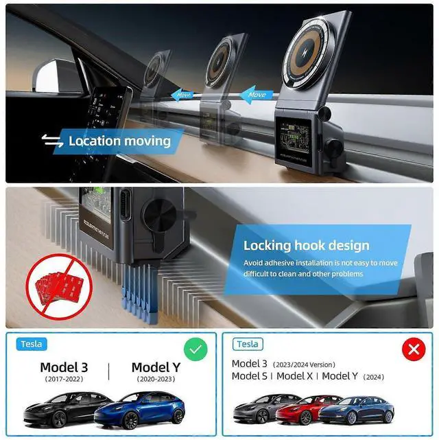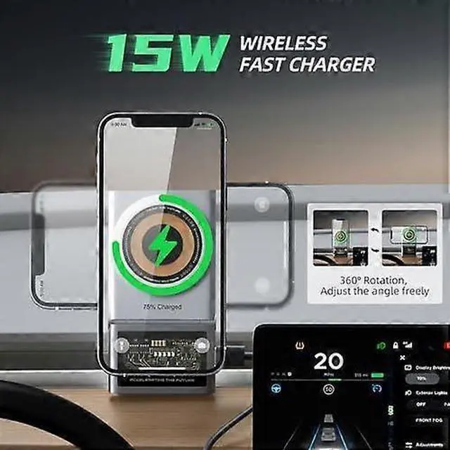 Upgrade your Tesla Model 3 or Y with this magnetic wireless phone holder, featuring 15W fast charging for quick power-ups on the go. Its tool-free air vent installation ensures a secure, wobble-free fit, while the strong magnetic grip keeps your device stable during drives. Compatible with iPhone 15 Pro Max, 14, 13, 12, and most Android smartphones, this holder adds a sleek, cyberpunk-inspired style to your car's interior. Enjoy hassle-free charging and a modern look, backed by responsive customer support for complete satisfaction.