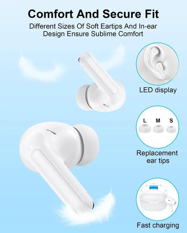 Comfortable & Secure Fit: Engineered with an ergonomic in-ear design, the earbuds wireless come with soft, skin-friendly silicone ear tips that ensure a snug, personalized fit for prolonged wear. They stay firmly in place during high-intensity workouts, jogging, or lengthy commutes, and the ultra-lightweight construction effectively minimizes ear fatigue even after hours of use.