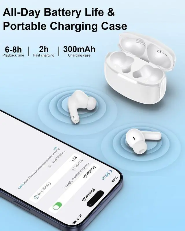 Long-Lasting Battery: The ear buds wireless for Samsung S25 offer up to 6-8 hours of uninterrupted playback on a single charge, while the compact charging case boosts the total usage time to 24 hours. Qi-certified wireless charging compatibility enables hassle-free recharging on all Qi-enabled pads, rendering the earbuds ideal for both daily commutes and extended travel.