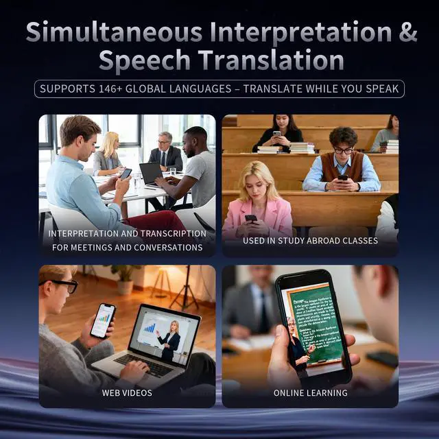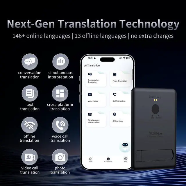 AI Real-Time Translation Supporting 146 Languages: AI Translator Device With the latest AI translation technology, you can instantly switch between multiple languages during business meetings, overseas trips, or while traveling. It integrates translation for speeches, text, photos, and videos, enabling cross-cultural communication