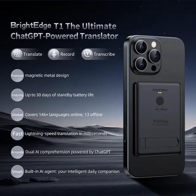 Multi-Function Magnetic Stand Design: AI Translator Device Easily attachable to smartphones, tablets, and laptops, allowing hands-free voice calls and multilingual translations. It is convenient to use both in business settings and outdoors, greatly enhancing work efficiency
