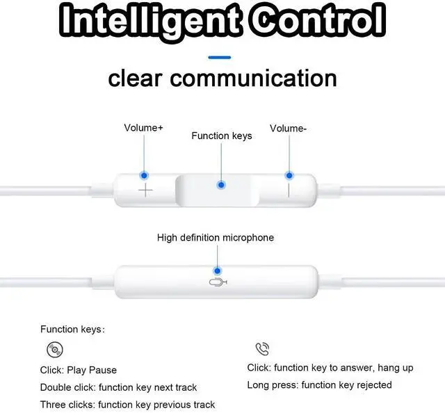 1. Type C headset has built-in controller and high quality hands-free microphone. Music and volume controls are designed to play/pause music, increase/decrease volume, the next and previous track, answer/end calls, wake Siri up. 2. There is no need to take your phone out of your bag or pocket when using the USB-C headphone controller, thus freeing your hands for easy use.