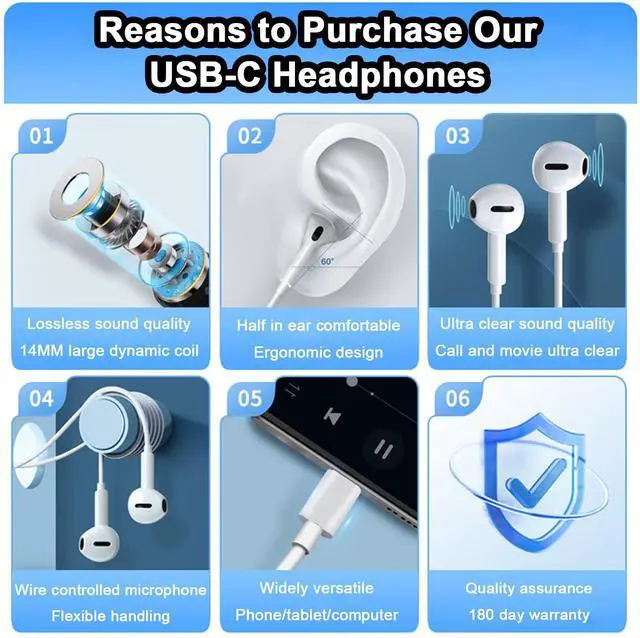 5. In-Ear Headphones are widely compatible with iPhone 17 / 17 Pro / 17 Pro Max / Air, for iPhone 16 / 16 Pro / 16 Pro Max / 16 Plus / 16e, for iPhone 15 / 15 Pro / 15 Pro Max / 15 Plus, for iPad Models and for MacBook Models as well as for SAMSUNG Models and for GOOGLE Models, Works with most USB Type-C devices.