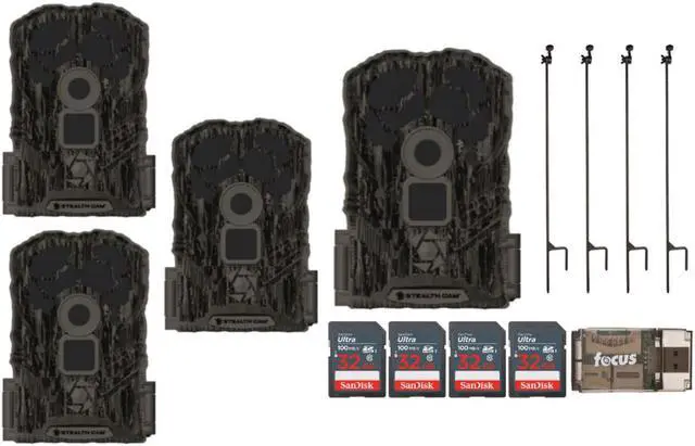 18 IR LEDs Perfectly illuminate your nighttime photos with 18 IR LED lights. Battery and SD Card The Stealth Cam Browtine 14MP Camera requires 8 AA batteries and a class 10 SD card into the camera. Mount the Camera You can mount the camera at the desired location using the strap mount, Python Lock cable, Articulating Ball Joint Mount, or other desired mounting mechanism. Position the camera so that it does not face East or West directly as the rising and setting of the sun can cause false-positive triggers. Stealth Cam Browtine 14MP Trail Camera with Video The Stealth Cam Browtine 14MP Camera has a 60-foot detection and flash range that see farther with a long-distance PIR sensor and LEDs.