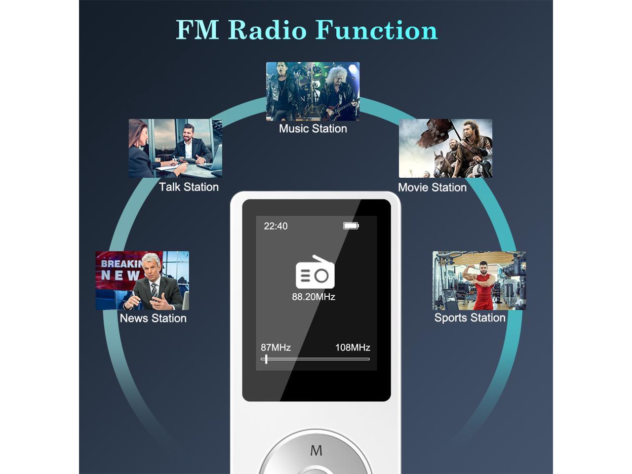 Multi-function MP3 Player: Supports Playing Musics, Watching Movies, FM Radio, Voice Recording, Reading E-books, Browsing Pictures. It also supports transferring files.